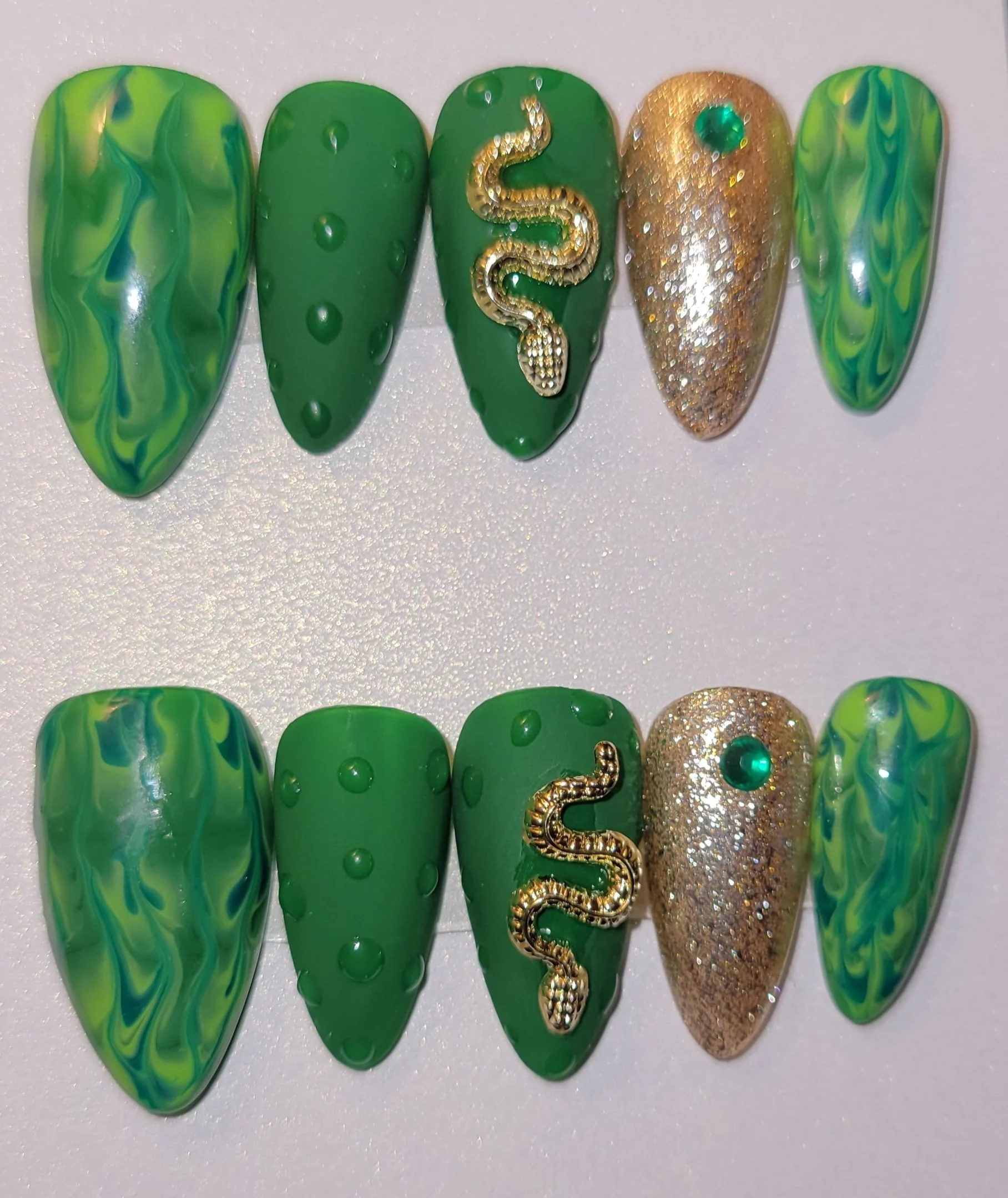 Green and gold snake press-ons