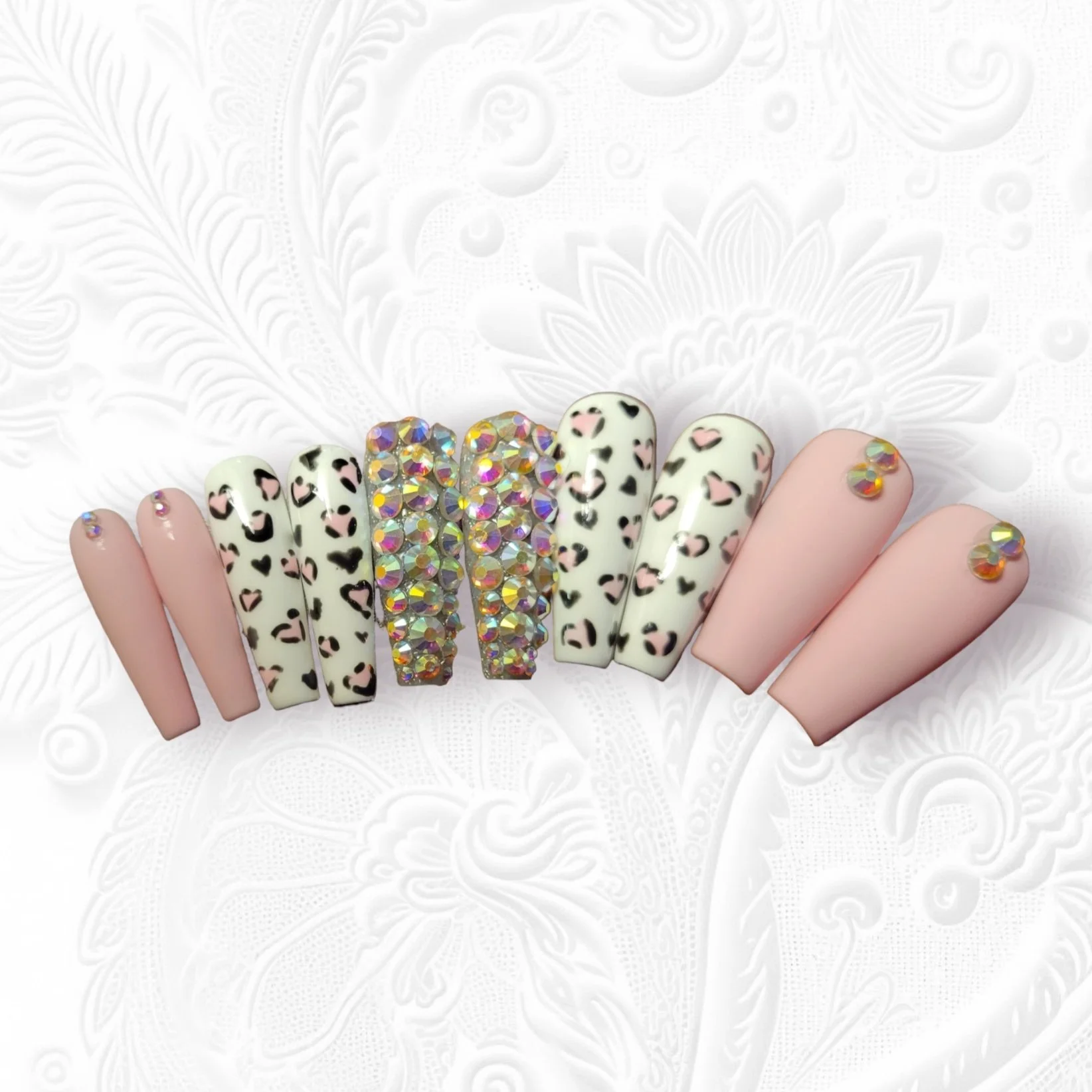 Pink Heart Leopard Press-ons